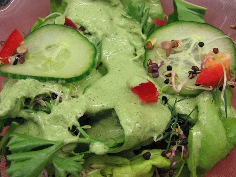 (az öntet a medvehagyma kedvéért kicsit savanykás lett, aki így nem szereti, tegyen kevesebb citromlét bele.)A salátához valókat beletesszük szépen egy nagy tálba. Az öntethez valókat pedig a turmixgépbe. Az öntetet csak tálalás után rakd a salátára, mert jobban néz ki külön-külön!