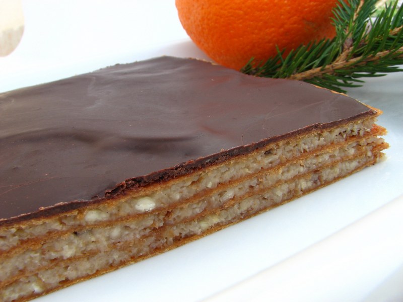 Nagyon jól sikerült a mai zserbó… gyümölcspalacsinta lapokból, dió töltelékkel, csokimáz a tetején!