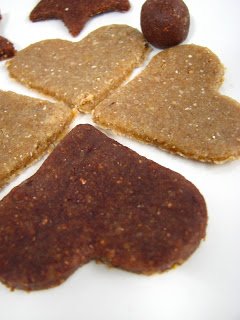 2-3 mm vastagságúra kinyújtjuk, és sütemény szaggatóval különböző formákat szúrunk ki belőle. (itt virág és lyukas közepű virág formákat, a kakaós tésztából szív alakú formákat, vagy egyszerűen golyókat formázunk belőlük)