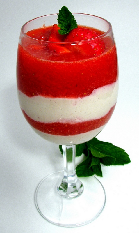 A kesu habot és az epret felváltva rétegezve poharakba töltjük.A rétegek közé vékonyan lehet szórni kókuszreszeléket (aki szereti), vagy utifűmaghéjt, hogy ne folyjanak össze a rétegek.