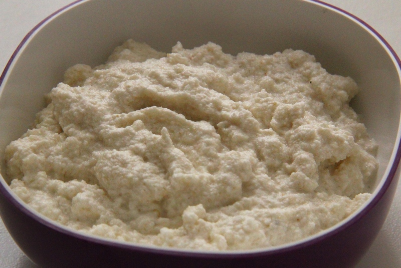 1,5 dl vízzel simára turmixoljuk. Az állaga ekkor még lágy, tejfölös-túrós-szerű.